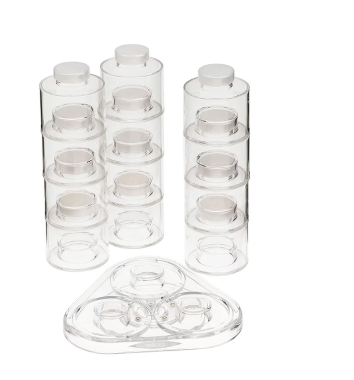 Este unul dintre cele mai utile accesorii din bucatarie, astfel iti vei putea organiza condimentele in fiecare recipient si le vei putea tine intr-un singur loc sigur si vizibil. piese detasabile (puteti organiza recipientele cum doriti) usor de utlizat practive portabile datorita capacelor puteti lipi etichete cu denumiri , insa materialul transparent este ideal pentru a vedea imediat condimentul necesar accesoriu indispensabil unei bucatarii usor de organizat condimentele preferate