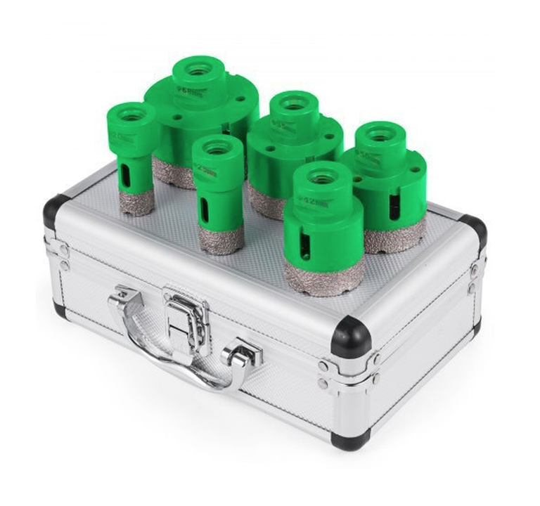Set 6 carote diamantate pentru gresie marmura de la 20 la 68 mm prindere M14 umed sau uscat cutie depozitare