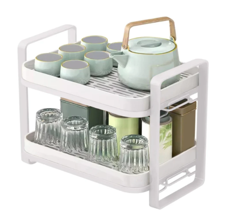 Suport pentru scurgerea paharelor cu 2 nivele si maner ALB
