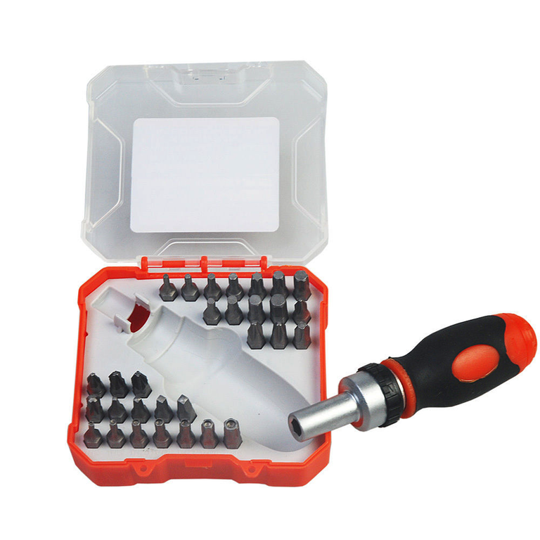 Set surubelnita cu clichet 31 piese Acest set vine insotit de o cutie de depozitare a surubelnitei cu clichet cat si a celor 31 de piese. Cutia are rol de protectie de depozitare a sculelor, fiind fabricata dintr-un plastic dur, rezistent la socuri. Surubelnita este prevazuta cu un maner ergonomic, care o face mult mai usor de manevrat. Aceste piese sunt realizate din otel si sunt ideale pentru micile reparatii sau pentru reparatiile care necesita o surubelnita diferita de cea normala, cum ar fi spatiile inguste. Pachetul include: 1x surubelnita cu clichet 4x Pozi: PZ1/ PZ2/ PZ2/ PZ3 4x Hex: H3/ H4/ H5/ H6 4x Philips: PH1/ PH2/ PH2/ PH3 4x Square: S0/ S1/ S2/ S3 14x Torx: T10/ T10/ T15/ T15/ T20/ T20/ T25/ T25/ T27/ T27/ T30/ T30/ T40/ T40 *Imaginile, culorile si caracteristicile descrise au caracter informativ și pot contine mici inadvertente sau diferi ocazional fața de produsele prezentate pe site. Echipa GAVE.RO"
