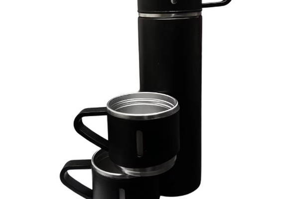 Termos 500 ml + 2 cesti otel inoxidabil negru