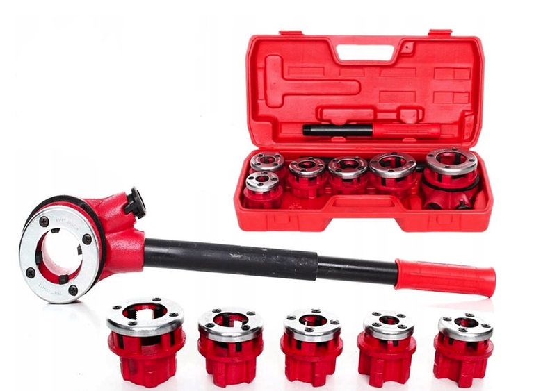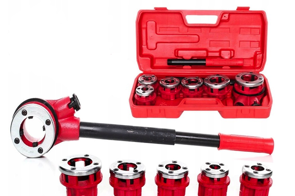 Filet hidraulic pentru țevi 6 bucăți matrițe 1/4″ – 1.1/4″ Filet hidraulic pentru țevi cu 6 matrițe. Dispozitivul este utilizat pentru filetarea țevilor și fitingurilor. Acesta va fi folosit atât în timpul renovării, cât și în timpul construcției. Dinți de filet din oțel aliat CrV cu duritate HRC în intervalul 58-62. Carcasă matriță din fontă. Caracteristicile produsului: pentru filetarea țevilor și fitingurilor cuțite din oțel aliat crom vanadiu cu duritatea HRC 58-62 construcție durabilă din fontă 6 mor în set maner cu prelungire Moare: 1/4"; 3/8"; 1/2"; 3/4"; 1"; 1-1/4" · Mâner cu extensie Parametrii tehnici ai robinetului: Moare: · 1/4" · 3/8" · 1/2" · 3/4" · 1" · 1-1/4" Greutate: 6,3 kg