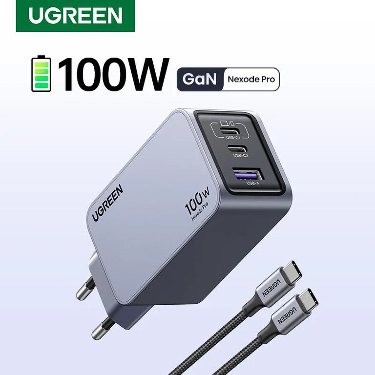 Incarcatorul rapid UGREEN Nexode Pro 100W este o solutie compacta si puternica pentru alimentarea rapida a dispozitivelor tale. Datorita tehnologiei GaN, gadgetul ofera o eficienta energetica superioara si o disipare redusa a caldurii, astfel ca desigmul sau a devenit mai redus, ceea ce iti permite sa il iei in toate calatoriile tale. Cu 2x USB-C si 1x USB-A, permite incarcarea simultana a mai multor dispozitive, fiind compatibil cu MacBook, iPhone, iPad, Samsung, Huawei, Dell si multe altele. Suportand standarde de incarcare rapida precum PD 3.0, QC 4.0+ si PPS, asigura o alimentare optima si sigura pentru fiecare dispozitiv. In plus, sistemele avansate de protectie impotriva supraincalzirii, supratensiunii si scurtcircuitului garanteaza o utilizare fiabila. Cu un design modern in culoare gri metalic, UGREEN Nexode Pro 100W poate fi optiunea smart pentru cei care au nevoie de un incarcator performant, sigur si portabil. Incarcatorul rapid retea UGREEN Nexode 100W 3-Port GaN Fast Charger EU are urmatoarele caracteristici: Putere maxima 100W; 3 porturi ( 1 x USB-A +2 x USB-C); Tehnologie GaN IIt; Incarcare inteligenta. Dispozitivul de care ai nevoie UGREEN Nexode Pro este un incarcator compact, dar cu posibilitati mari. Iti ofera o putere de incarcare de pana la 100 W, iar datorita celor 3 porturi USB disponibile, poti alimenta mai multe dispozitive simultan, fara probleme. Suporta standarde de incarcare rapida si il poti folosi cu succes pentru o gama larga de dispozitive populare, inclusiv laptopuri, smartphone-uri si console de jocuri. Incarcare simultana Incarcatorul Nexode Pro poate alimenta simultan mai multe dispozitive inteligente. Echipat cu 3 porturi – USB-A si 2x USB-C, dispozitivul permite incarcare eficienta si rapida. Cu o putere de 100 W si compatibilitate cu standarde de incarcare rapida precum PD, QC, PPS, SCP, FCP, AFC, Apple 5V 2.4A, Samsung 5V 2A si BC1.2, vei putea alimenta cu energie dispozitivele tale intr-un timp scurt. Siguranta garantata Iti doresti o incarcare sigura pentru dispozitivele tale? Cu Nexode Pro, nu trebuie sa iti faci griji! Gadgetul este dotat cu un cip inteligent care protejeaza atat incarcatorul, cat si dispozitivele conectate impotriva supratensiunii, supraincalzirii, scurtcircuitului si supracurentului, oferindu-ti astfel o utilizare fiabila si fara riscuri. Performanta maxima intr-un format compact Nexode Pro utilizeaza tehnologia avansata GaN, care ii permite sa fie cu 40% mai mic decat incarcatoarele standard, mentinand in acelasi timp aceeasi putere si eficienta. Datorita designului sau compact, este ideal atat pentru calatorii cat si pentru utilizarea zilnica. Indiferent daca esti in drum spre munca, calatoresti sau lucrezi de la distanta, acest incarcator iti asigura o incarcare rapida si fiabila, fara a ocupa mult spatiu. Vezi si politica de retur.