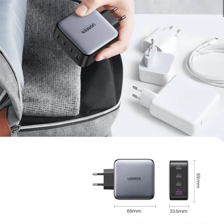 Incarcator rapid retea UGREEN Nexode S 100W 4-Port GaN Fast Charger EU, 3x USB-C, 1x USB-A, Negru/Gri