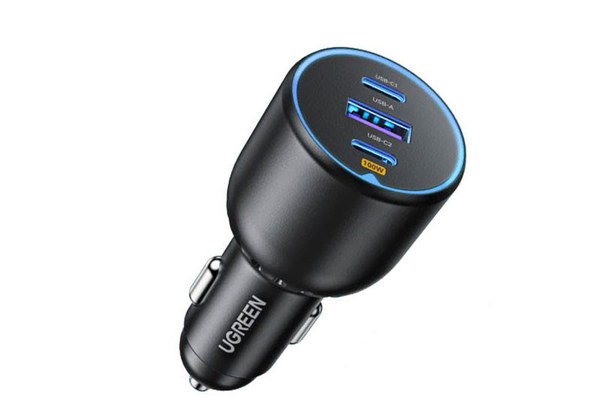 Resigilat - Incarcator auto UGREEN 130W 3-Port Fast Car charger EC705, 1 x USB A, 2 x USB C, Gri
