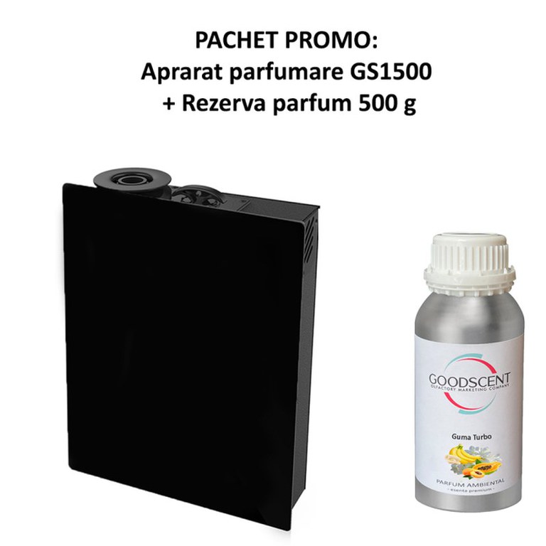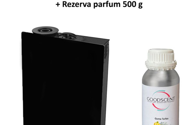 Bucura-te de pachetul complet de parfumare ambientala.Aparat profesional Parfumare spatii Good Scent GS 1500, culoare negru, cu rezerva inclusa
