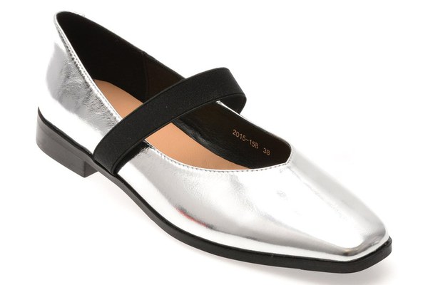Balerini GRYXX argintii, 201515, din piele naturala