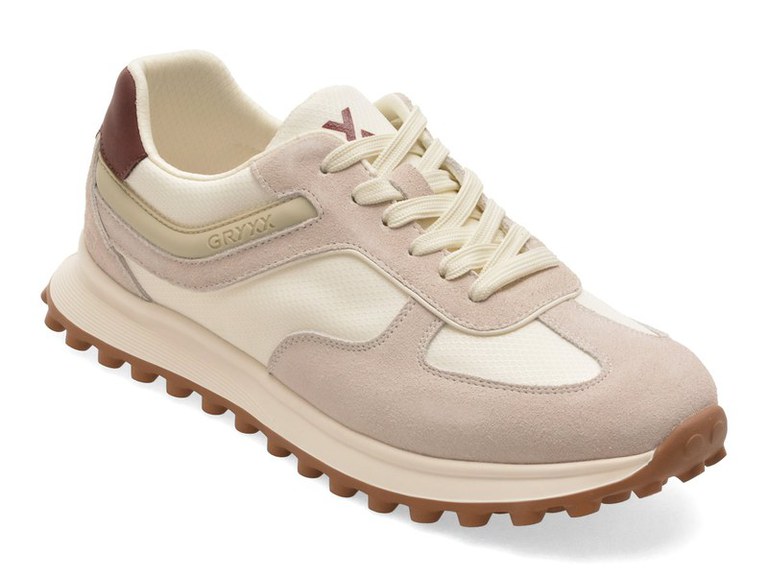 Pantofi sport GRYXX albi, 58271, din material textil si piele naturala