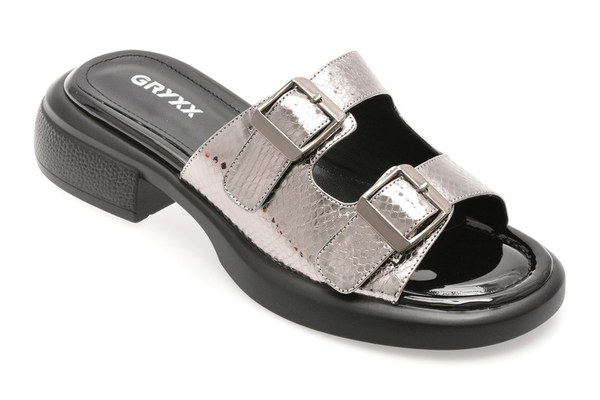 Papuci GRYXX argintii, H82, din piele naturala lacuita , Pentru , Culoare , Material exterior: , Material talpa: Cauciuc termoplastic , Tip inchidere Slip-on . Livrare gratuita pentru comenzile de peste 299 RON acasa si in locker. Click & Collect. Retur gratuit de acasa. in locker sau in magazinele fizice GRYXX.