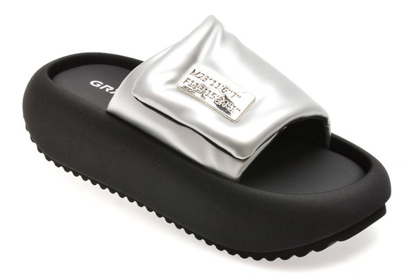 Papuci GRYXX argintii, L821, din piele ecologica , Pentru , Culoare , Material exterior: , Material talpa: pvc , Tip inchidere Slip-on . Livrare gratuita pentru comenzile de peste 299 RON acasa si in locker. Click & Collect. Retur gratuit de acasa. in locker sau in magazinele fizice GRYXX.