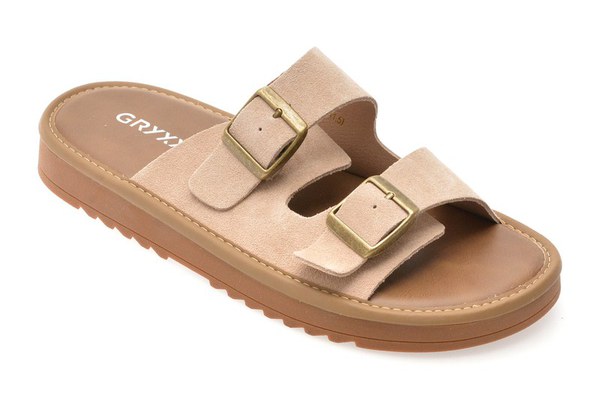 Papuci GRYXX bej, 12504, din piele intoarsa