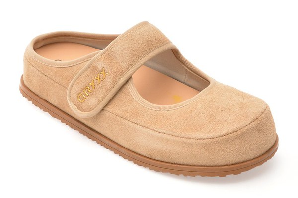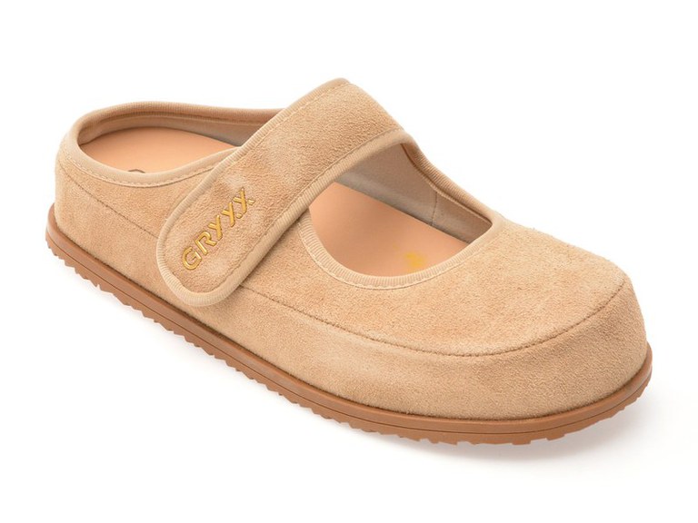 Papuci GRYXX bej, 25905, din piele intoarsa