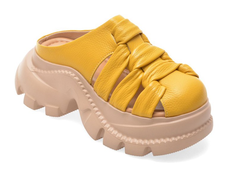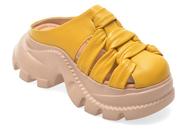 Papuci GRYXX galbeni, 56263, din piele naturala