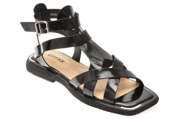 Sandale GRYXX negre, 2898, din piele naturala lacuita