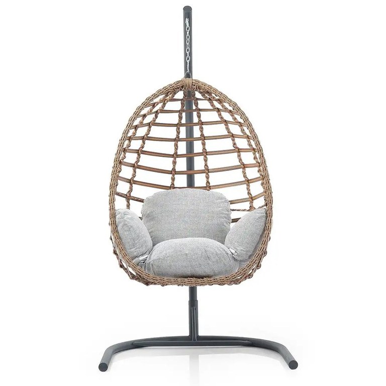 Descoperă confortul și eleganța modelului de balansoar-scaun suspendat din Rattan, perfect atât pentru utilizare în exterior, cât și în interior!Fabricat din ratan artificial de înaltă calitate, acest balansoar este conceput pentru a rezista condițiilor variate ale mediului exterior, dar și pentru a aduce un aer de relaxare și rafinament în interiorul casei tale. Cu dimensiuni de 205x110x95 cm, acest balansoar oferă spațiu generos pentru a te relaxa și a te bucura de momente de liniște și contemplare.Culoarea pernelor, într-un gri elegant, adaugă un plus de confort și stil, îmbinându-se perfect cu nuanța cappuccino a ratanului. Pernele sunt fabricate dintr-o stofă de înaltă calitate, oferindu-ți o senzație plăcută la atingere și un suport confortabil.Suportul din metal, de culoare neagră, asigură stabilitatea și durabilitatea balansoarului, suportând o greutate maximă de până la 130 kg. Totuși, este important de menționat că materialul nu este impermeabil, așa că este recomandat să fie protejat în caz de ploaie sau umiditate excesivă.Descoperă și alte piese de mobilier care pot deveni spațiul tău de relaxare, precum: canapele și fotolii, colțare sau scaune elegante!Material : ratan artificialCuloare perne: griPerne: stofăCuloare: CappuccinoSuport: metalCuloare suport: negruDimensiuni (lxAxÎ): 205x110x95 cmDimensiuni ou : h:130 cm l: 70cmGreutate maximă suportată: 130 kgMaterialul nu este impermeabilFurnizat cu perne, nemontat