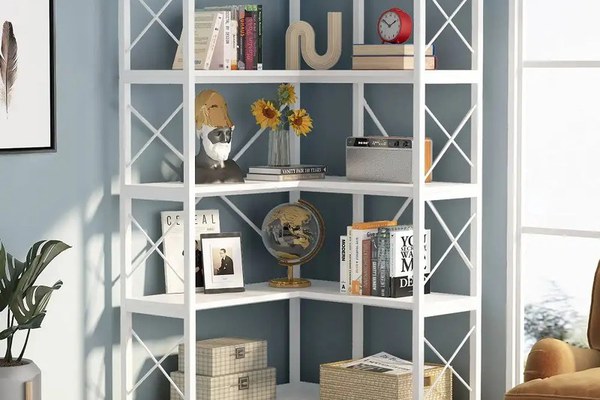Biblioteca Cindy pentru colt din culuare alb 167 cm