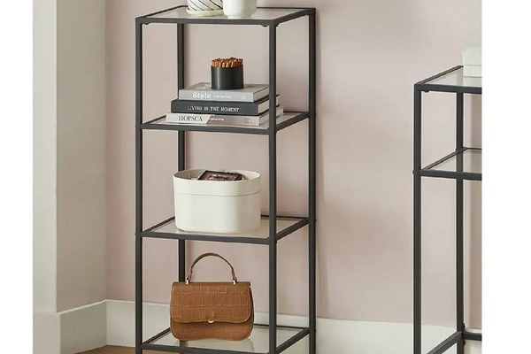 Biblioteca din metal si sticla,metal culare negru 95x40x30 cm