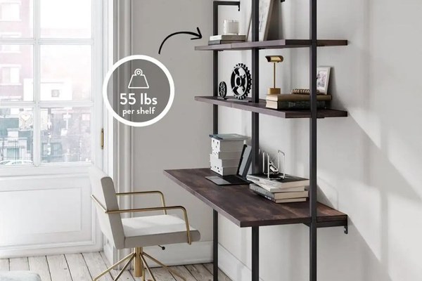 Biblioteca,birou,masa,dinlemn, Lemn + metalDimensiuni:Lungime : 70cmlatime: raft 22 cmlatime masa: 50 cmInaltime: 200 cmBlad masa lemn : 70x50 cm Product sizes: Width: 70 cm Shelf depth: 22 cm Table depth: 50 cm Height: 200cm Shelf thickness: 1.8 cm (-+ 1cm)