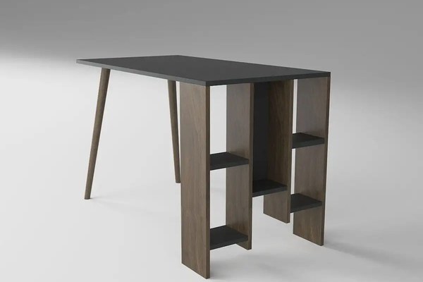 Birou modern intr-o combinatie de culori actuala: gri antracit cu nuc. Biroul are dimensiuni potrivite atat pentru un adult cat si pentru un scolar si este dotat cu rafturi laterale pentru carti.Este realizat din pal de 18 mm combinatie de gri cu nuc, iar cele 2 picioare sunt din lemn.Se livreaza in toata tara prin curier neasamblate, coletele fiind insotite de schita si accesorii montaj.Asamblarea se face de catre beneficiar.Curatarea cu o carpa alba moale si produse de curatenie neabrazive specifice.Dimensiuni:L 120, l 60, h 73.8 cm