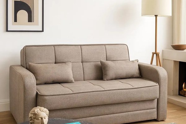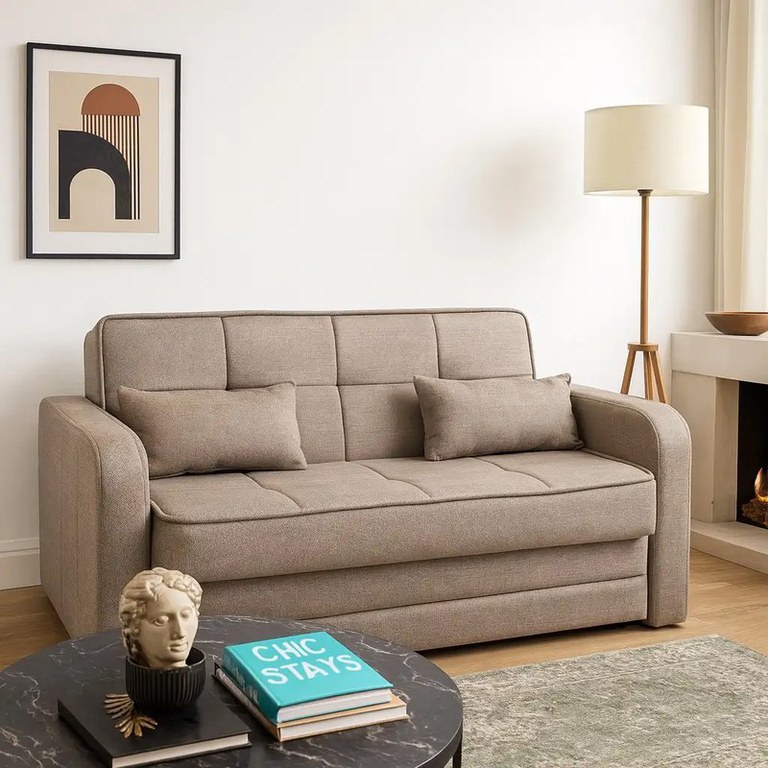 Canapea extensibila 2 locuri cu lada 191x145 cm – stofa maro dechis – Dafne