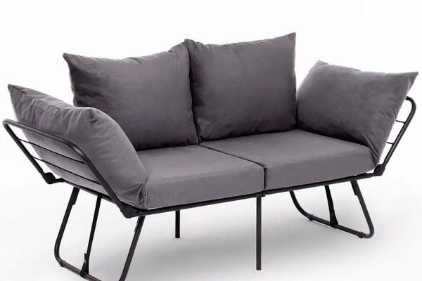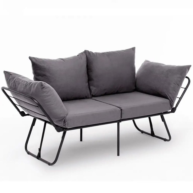Canapea extensibila 2 locuri living 180x60 cm – stofa gri & metal negru – Viper