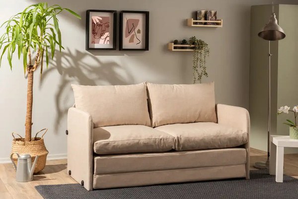 Canapea extensibilă de 2 locuri bej Saga – stil modern & extensie practicăAdaugă un strop de confort casei tale cu modelul de canapea extensibilă de 2 locuri bej Saga, o piesă de mobilier ce îmbină perfect designul contemporan cu nevoile reale ale vieții de zi cu zi. Culoarea bej, în tonuri calde și naturale, se potrivește de minune în orice decor, aducând un aer primitor și elegant încăperii. Ideală pentru spații mici sau medii, canapeaua se transformă rapid într-un pat generos și confortabil – perfect pentru serile în care oaspeții rămân peste noapte.Caracteristici și avantaje ale canapelei extensibile de 2 locuri SagaDesign modern și compactLiniile simple, curate, precum și dimensiunile reduse (L: 148 cm x l: 70 cm x h: 66 cm) fac din această canapea o alegere inspirată pentru apartamente, garsoniere sau camere de oaspeți.Funcție extensibilă practicăCanapeaua se extinde ușor, ajungând la o suprafață de dormit de 140 x 200 cm – suficient de mare pentru două persoane. Se extinde la nivelul podelei, creând o zonă de odihnă amplă, stabilă și confortabilă.Materiale durabile, de calitate superioarăRealizată din material textil de calitate superioară, moale și plăcut la atingere, și susținută de un cadru din oțel robust, canapeaua este gândită să reziste în timp și să ofere confort zi de zi.VersatilitatePotrivită atât pentru livinguri moderne, cât și pentru camerele de oaspeți, canapeaua de 2 locuri Saga este o piesă multifuncțională, ideală pentru locuințe cu spațiu optimizat la maximum.Cum să amenajezi spațiul cu modelul de canapea de 2 locuri SagaCombină canapeaua cu o măsuță de cafea din lemn deschis și un covor alb pufos. Adaugă plante verzi pentru un contrast viu și natural.Folosește perne decorative în tonuri pastelate și o pătură moale pentru un spațiu cald și primitor.Corpurile de iluminat cu lumină caldă completează perfect atmosfera.Descoperă și alte canapele extensibile disponibile pe Homs.ro. Explorează întreaga colecție de canapele și fotolii și adaugă și o măsuță de cafea în living pentru un plus de stil!