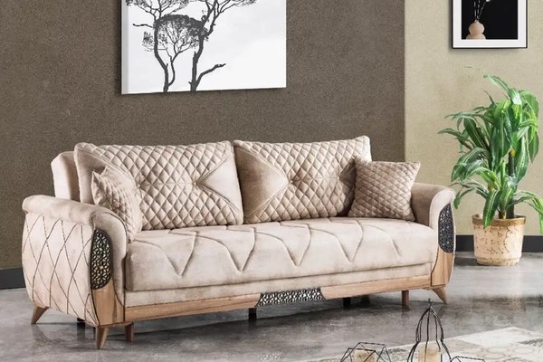 Canapea extensibila 3 locuri cu lada 229x94x90 cm – stofa bej – Peru