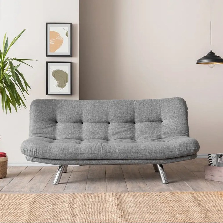 Canapea extensibilă 3 locuri gri Merburn – design minimalist & compactDescoperă funcționalitatea într-o formă simplă și elegantă, cu modelul de canapeaua extensibilă de 3 locuri gri, Merburn, ideală pentru livinguri moderne. Cu un design minimalist și dimensiuni compacte, canapeaua Merburn oferă confort zilnic și se transformă ușor într-un pat de 180x110 cm.Tapițată în stofă gri, plăcută la atingere și ușor de întreținut, această canapea se integrează armonios în orice tip de amenajare. Picioarele înalte cromate adaugă un aer contemporan și permit curățarea ușoară sub mobilier.Caracteristici și avantaje ale canapelei extensibile MerburnDesign minimalist și elegantCu linii simple și nasturi fini tapițați pe spătar și șezut, canapeaua extensibilă Merburn este o piesă de mobilier care adaugă stil, fără să aglomereze vizual spațiul.Dimensiuni echilibrate pentru livinguri moderneLungime: 180 cmLățime: 87 cmÎnălțime: 85 cmDimensiune extinsă: 180 x 110 cmAdâncime șezut: 52 cmLățime șezut: 180 cmÎnălțime șezut: 40 cmFuncție extensibilă Transformă canapeaua într-un pat simplu și confortabil cu un singur gest – ideal pentru seri de film sau pentru a găzdui oaspeții peste noapte.Tapițerie din stofă griRezistentă, moale la atingere și versatilă, stofa gri se asortează ușor cu restul mobilierului.Picioare înalte cromatePermite curățarea ușoară sub canapea și adaugă un detaliu estetic modern și aerisit.Cum să amenajezi locuința cu modelul de canapea exstensibilă Merburn griAsorteaz-o cu măsuțe de cafea albe sau din lemn natur, un covor neutru și câteva plante verzi pentru un efect cald și aerisit.Adaugă perne în nuanțe pastel sau tonuri metalice pentru un look elegant, dar subtil.Explorează pe Homs.ro și alte canapele extensibile potrivite pentru locuințe moderne. Completează decorul cu fotolii, rafturi decorative sau biblioteci, pentru un spațiu complet armonios.