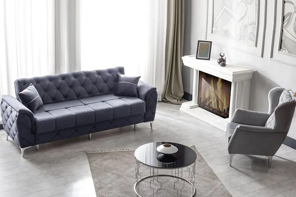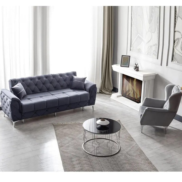 Canapea extensibila 3 locuri living 233x90x92 cm – stofa, gri antracit – Cuba