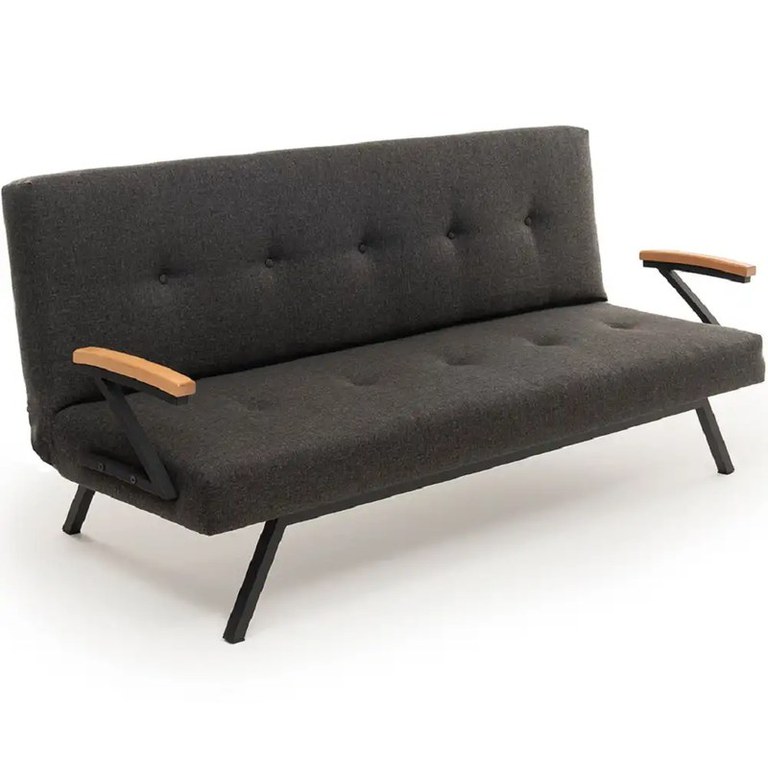 Canapea extensibilă modernă, 180x100 cm – stofă gri & metal negru – Newyork