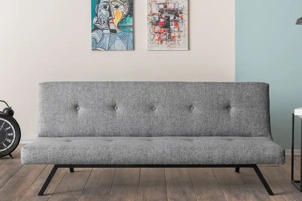 Canapea extensibilă modernă – Zola, stofă gri & cadru metalic negru, 180x102 cmCompletează-ți spațiul cu un mix perfect de design modern și funcționalitate. Canapeaua Zola este ideală atât pentru momentele de relaxare zilnică, cât și pentru primirea oaspeților, transformându-se rapid într-un pat confortabil.Design & materialeTapițeria din stofă gri adaugă un aer elegant și versatil, ușor de asortat cu diverse stiluri de amenajare. Cadrul din metal negru asigură rezistență și stabilitate, păstrând în același timp o linie minimalistă și modernă.Dimensiuni:Lungime: 180 cmLățime: 64 cmÎnălțime: 78 cmDimensiuni extinse (pat): 180 x 102 cmAvantaje:Funcție extensibilă, ideală pentru spații miciConstrucție solidă cu cadru metalic durabilTapițerie moale, plăcută la atingere și ușor de întreținutDesign modern, potrivit atât pentru living, cât și pentru birou sau garsonierăAlege canapeaua Zola pentru un plus de confort, funcționalitate și stil în casa ta!