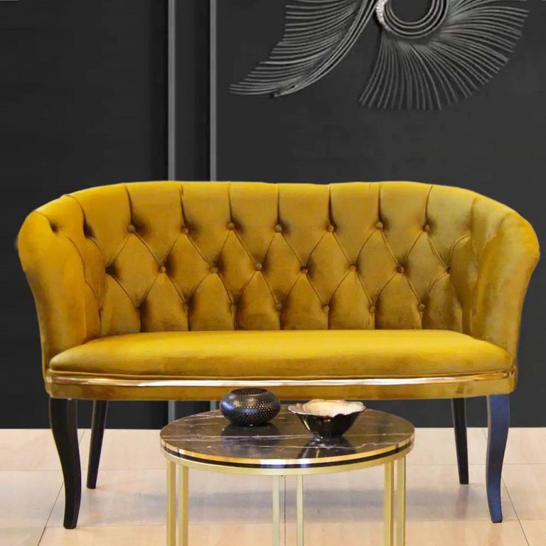 Canapea Milano,Dimensiuni: Canapea 2 locuri: Lungime 130 cm,Adancime 65 cm, Inaltime picioare: 34 cmCuloaremustarMaterialPicioare din lemnTextil -stofaBurete