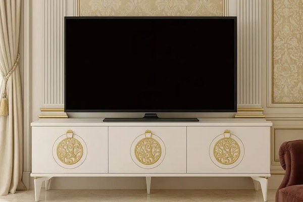 Comodă TV Lorena – 160 cmAdaugă eleganță și funcționalitate spațiului tău de living cu comoda pentru televizor Lorena, un element de mobilier cu design modern și finisaje rafinate. Cu o combinație sofisticată de alb lucios și accente aurii, această comodă oferă un plus de stil, dar și spațiu generos pentru depozitare.Caracteristici principale:Design elegant, potrivit pentru interioare moderne sau clasice.Finisaj alb cu detalii aurii decorative ce adaugă un aer luxos.Spațiu amplu pentru suport TV, console, decorațiuni și accesorii media.Dimensiuni:Lungime: 160 cmLățime: 40 cmÎnălțime: 50 cmMaterial: PAL melaminat rezistentCuloare: Alb + detalii auriiPachet livrare:Colet 1: 166 x 45.5 x 11.5 cmGreutate: 25 kgSe livrează neasamblată, cu toate accesoriile și instrucțiunile necesare incluse.