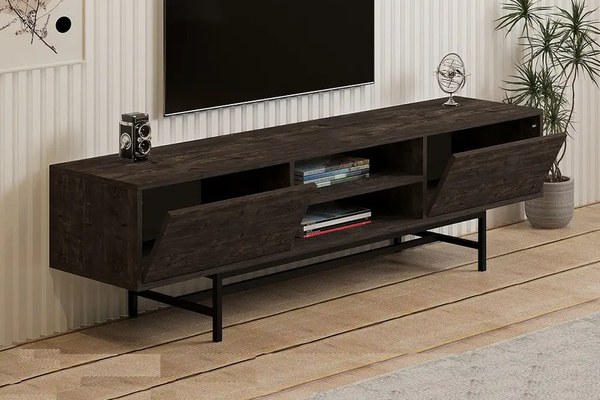 Comoda tv Angelyn pentru living culoare nuc si antracit 180 cm