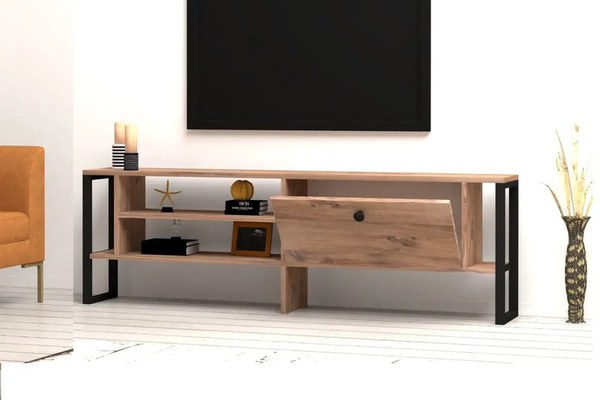 Comoda tv cu picioare metal Ares Homs 160 cm, nuc-negru,10629