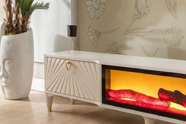 Inovație & Eleganță - Comoda TV cu Semineu Calvin Bej 160 cmRevigorează-ți spațiul de living și adaugă un element rafinat: comoda TV cu semineu Calvin, în nuanța de bej. Cu o combinație inedită între funcționalitatea unei comode TV și atmosfera primitoare a unui semineu electric, acest produs redefinește confortul și luxul în propriul cămin.Caracteristici și avantaje- Semineu integrat: Beneficiază de atmosfera caldă și reconfortantă a unui semineu integrat în comoda TV, creând astfel un punct de atractie deosebit în camera ta.- Design elegant și versatil: Cu detalii aurii subtile și finisajul rafinat în nuanța de bej, comoda adaugă un aer sofisticat spațiului tău de living.- Spatiu generos de depozitare: Cu o lungime de 160 cm și un corp solid din pal de 18 mm, comoda oferă suficient spațiu pentru a-ți organiza și expune echipamentele multimedia și alte obiecte decorative.- Detalii aurii: Detaliile aurii subtile adaugă un element de eleganță și rafinament, completând aspectul general al comodei și evidențiind atenția la detalii.Detalii tehniceDimensiuni: Cu o lățime de 50 cm și o înălțime de 40 cm, comoda se integrează perfect în orice tip de decor și poate fi plasată în diverse colțuri ale camerei tale.Construcție durabilă: Structura din MDF și picioarele din plastic asigură o construcție solidă și fiabilă, garantând stabilitate și durabilitate în timp.Comoda tv bej realizata din carcasa pal 18 mm si usi din MDF cu 2 usi.Pe mijloc este prevazuta cu un spatiu cu sticla fix, care nu se deschide, cu led-uri in interior.Comoda are in partea din spate stecher si se introduce in priva.Din telecomanda, care este inclusa se schimba culorile led-urilor ce ofera senzatia de calcura a semineului.Telecomanda nu include baterii. Comoda nu are functie de incazire, doar inlumiareTransformă-ți spațiul de living într-o oază de confort și eleganță cu comoda TV cu semineu Calvin bej de 160 cm! Achiziționează acum și bucură-te de atmosfera primitoare și funcționalitatea deosebită pe care o oferă acest produs unic! Explorează și alte opțiuni din gama noastră de mobilier living pentru a completa designul interior al casei tale într-un mod elegant: canapele si fotolii, comode TV sau o biblioteca practica.