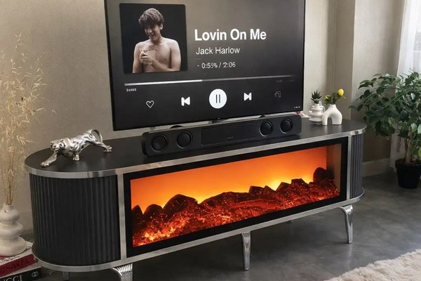 Comoda tv cu semineu Royal, cu led, 160 cmDimensiuniLungime: 160 cmLățime: 50 cmÎnălțime: 40 cmMaterialeCorp: MDFPicioare: plastic, finisaj auriuBoxa cu bluetoodTelecomandaEcran LED