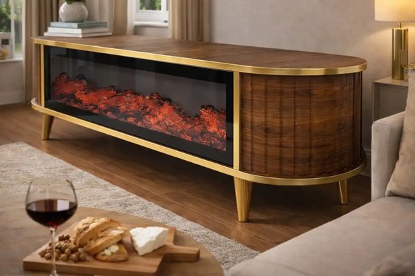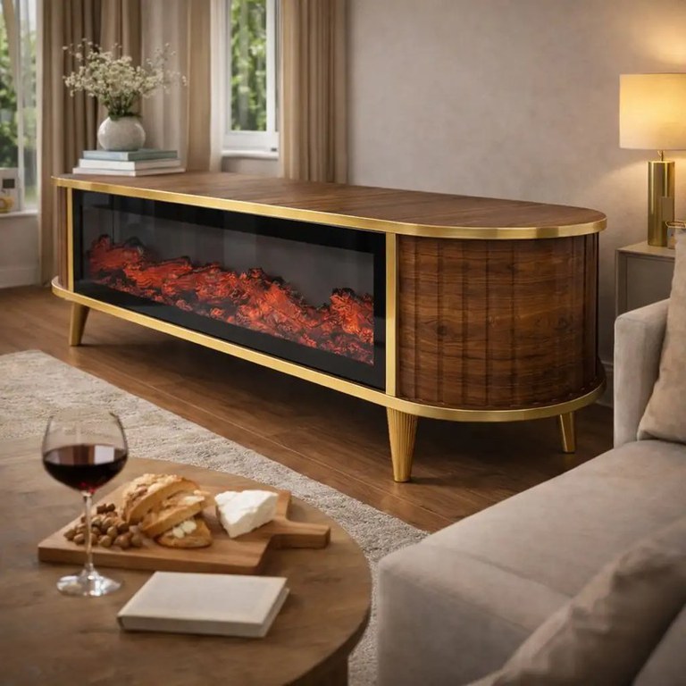 Comoda tv cu semineu Royal, cu led, 160 cm.nuc