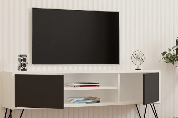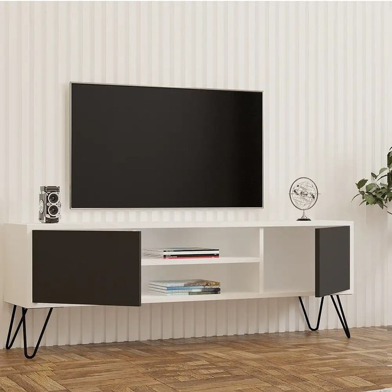 Comoda Tv Hare pentru living culoare alb si antracit,140 cm