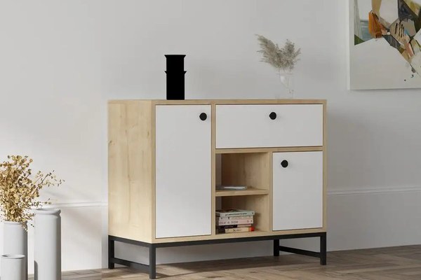 Consola Angel culoare stejar si alb 90cm Dimentiune:Lungime: 90 cmLatime: 40cmInaltime: 75 cmMaterieal :Pal melaminat 18 mmPicior din metalCuloare:StejarAlbNegruPachet:Colet 1:120 x 45 x 12 cm / 25 kg (1 Piece) 100% MELAMINE COATED PARTICLE BOARDThickness: 18 mmWidth: 90 cm Height: 75 cm Depth: 40 cmLeg Height: 15 cmMetal LegsNumerous Shelves