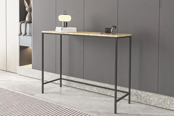 Consola Deco nuc-negru seria D-710 Homs pentru a adăuga eleganță și funcționalitate spațiului tău!Dimensiuni:Lungime: 1000 mmLățime: 300 mmÎnălțime: 800 mmMaterial: Profil metalic vopsit electrostatic, negru