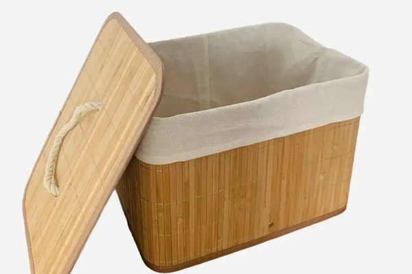 Coș de depozitare cu capac din bambus, elegant și practic, cu interior textil
