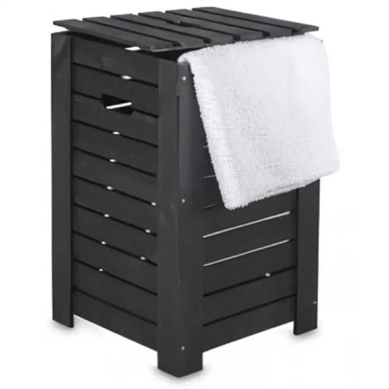 Cos pentru rufe din lemn, Wash Înălțime: 55 cmLățime: 35 cmAdâncime: 35 cmMateriela: Lemn,Culoare:Negru,Capaciate rufe;5 kgColet:60x40x15 cm/3 kg