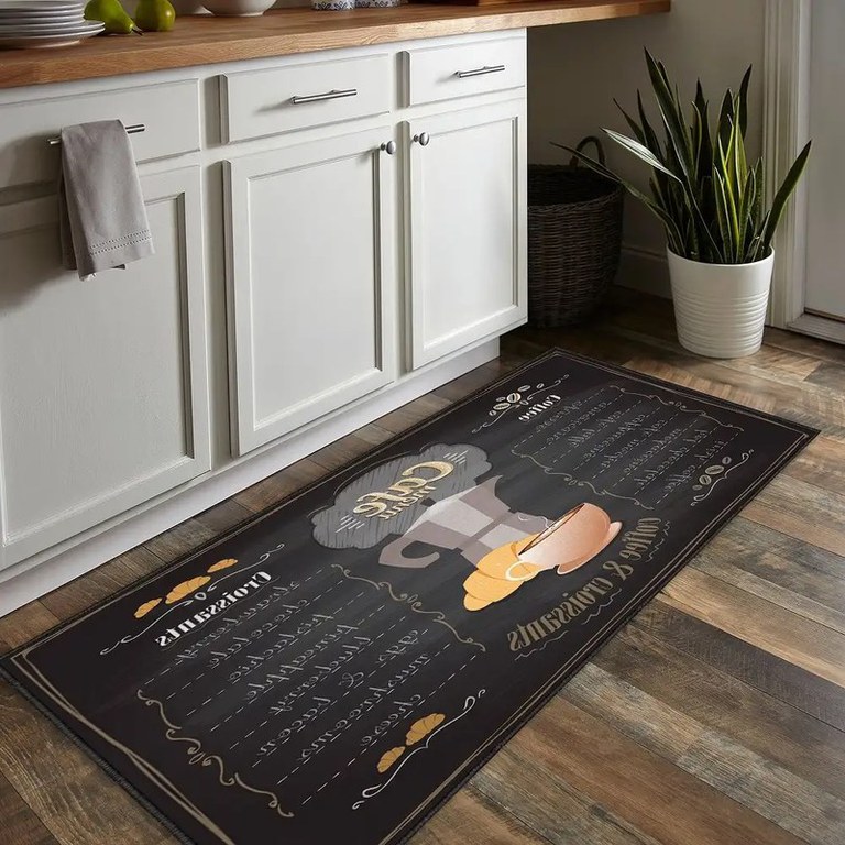 Covor de bucătărie Otto, 150 cm – Model Multicolor 001M – Design conceput pentru iubitorii de cafeaÎți place atmosfera unui café parisian? Acest covor îți aduce în casă magia unei cafenele din Paris, cu un design jucăuș ce include o ceașcă de cafea și un croissant. Covorul Otto, model 001M, 150 cm, cu un design multicolor aduce un strop de eleganță și rafinament în spațiul tău, fiind perfect atât pentru bucătăria ta, cât și pentru orice cafenea sau restaurant care vrea să ofere o atmosferă caldă și primitoare.Descoperă și alte modele de covoare, preșuri intrare sau covorașe de baie.Specificații tehniceTip produs: TraversăDestinație: Bucătărie, cafenele, restauranteFormă: DreptunghiularăCuloare: Multicolor (design cu cească de cafea și croissant)Tip țesătură: Țesătură platăCaracteristici speciale: AntiderapantDetalii compozițieDensitate totală: 950 g/m²Material: PoliesterDimensiune: 80 x 150 cmGreutate: 1.92 kgDimensiuni colet: 80 x 20 cmInstrucțiuni de întreținereSe recomandă spălarea manuală sau la mașină, la o temperatură maximă de 30°C.Evitați plasarea covorului în apropierea sobelor sau a altor surse de căldură intense.Nu folosiți înălbitori sau substanțe chimice agresive. Curățați covorul cu detergent și balsam conform normelor TSE.Evitați utilizarea excesivă de apă și șampon pentru a menține calitatea materialului.Pentru a preveni acumularea prafului între covor și podea, aspirați-l periodic.Interveniți imediat în cazul în care se varsă substanțe pe covor, pentru a preveni formarea petelor.