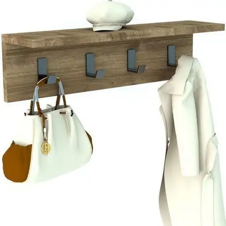 Cuie de hol cu 4 agatatori. Cuier tip polita pentru holuri de mici dimensiuni sau pentru dormitoare in care ai nevoie de spatiu de agatare. Polita superioara este utila pentru chei,poseta sau alte obiecte pe care vrei sa le ai la indemana. Datorita culorii si a liniilor simple, este usor de integrat in orice hol.Cuierul este confectionat din pal de 18 mm de culoare nuc. Se livreaza neasamblat, ambalat impreuna cu accesorii si manual montaj. Asamblarea se face de catre beneficiar. Curatarea se face cu o carpa alba moale si produse de curatenie neabrazive.Dimensiuni:L 600, l 163, h 145 mm
