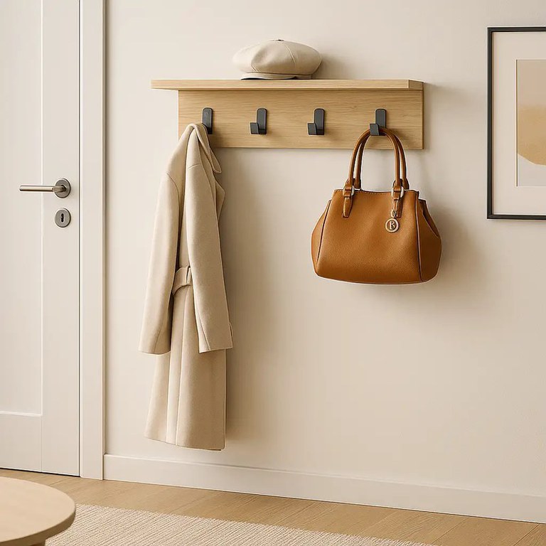 Cuier cu 4 agatatori si polita, AnatolyaHoms, 60 x 16 x 15 cm, stejar