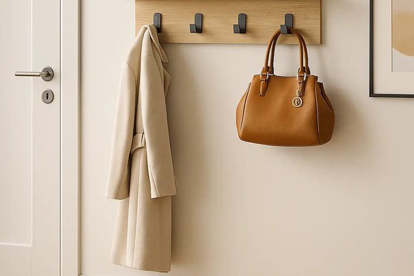 Cuie de hol cu 4 agatatori. Cuier tip polita pentru holuri de mici dimensiuni sau pentru dormitoare in care ai nevoie de spatiu de agatare. Polita superioara este utila pentru chei,poseta sau alte obiecte pe care vrei sa le ai la indemana. Datorita culorii si a liniilor simple, este usor de integrat in orice hol.Cuierul este confectionat din pal de 18 mm de culoare nuc. Se livreaza neasamblat, ambalat impreuna cu accesorii si manual montaj. Asamblarea se face de catre beneficiar. Curatarea se face cu o carpa alba moale si produse de curatenie neabrazive.Dimensiuni:L 600, l 163, h 145 mm