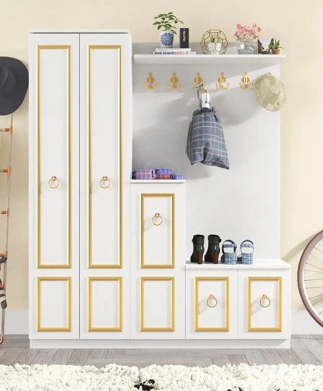 Cuier hol cu pantofar alb -auriu,Vera Homs 183 x 35 x 150 cm
