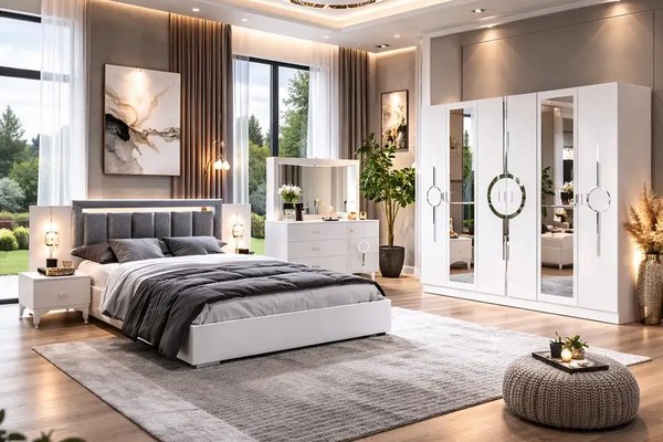 Dormitor modern complet – design elegant și funcționalVă prezentăm un dormitor modern, cu un design rafinat, în nuanțe deschise, ideal pentru un ambient luminos și relaxant. Mobilierul este realizat din materiale de calitate, cu finisaje premium și detalii elegante.Dulap (Șifonier mare) : 220 cm (lățime) x 210 cm (înălțime) x 50 cm (adâncime)Dulap spațios cu uși moderne și compartimentare practică. Oferă suficient loc pentru haine, rafturi interioare și bară pentru umerașe. Ideal pentru organizare eficientă.Comodă (Șifonier mic / comodă cu sertare) : 85 cm (lățime) x 170 cm (înălțime) x 40 cm (adâncime)Comodă elegantă, dotată cu sertare încăpătoare și oglindă. Perfectă pentru depozitarea accesoriilor, cosmeticelor sau obiectelor personale.Noptieră : 50 cm (lățime) x 95 cm (înălțime) x 40 cm (adâncime)Noptieră practică și modernă, ideală pentru a păstra la îndemână obiectele necesare pe timpul nopții.Pat cu LADA (cadru pat) : 180 cm (lățime) x 105 cm (înălțime tăblie) – pentru saltea de 160x200 cmPat confortabil cu tăblie tapițată modernă, conceput pentru un somn odihnitor și un plus de eleganță în dormitor.Descriere generală:Acest set de dormitor este alegerea perfectă pentru cei care își doresc confort, spațiu de depozitare generos și un design contemporan. Potrivit atât pentru apartamente, cât și pentru case spațioase.