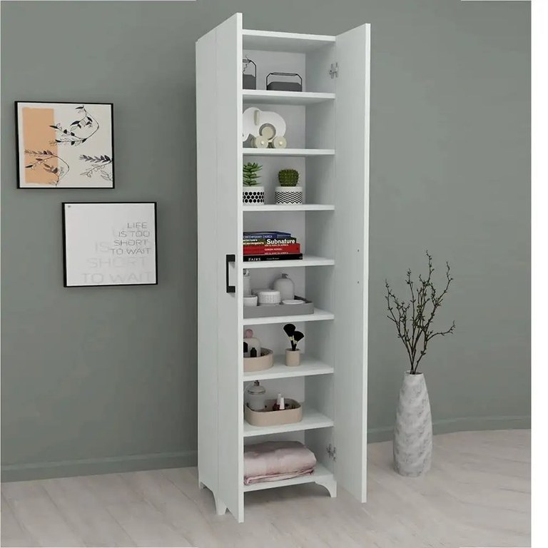 Descoperă versatilitatea și funcționalitatea maximă cu modelul de dulap multifunctional cu 8 rafturi, în nuanța luminoasă de alb! Cu 8 rafturi spațioase, acest dulap este soluția perfectă pentru a-ți depozita hainele în dormitor, dar și pentru a-ți organiza proviziile în debara sau în bucătărie, inclusiv vesela și ingredientele. Poate fi folosit chiar și în baie, pentru a depozita produsele de îngrijire personală și prosoapele.Fabricat cu atenție din materiale de calitate superioară, acest dulap este durabil și rezistent în timp. Designul său modern și elegant îl face potrivit pentru orice tip de decor, aducând un plus de stil și ordine în orice încăpere.Indiferent de spațiul în care decizi să-l amplasezi, dulapul multifuncțional cu 8 rafturi în nuanța albă este alegerea ideală pentru a-ți transforma casa într-un spațiu organizat și plin de rafinament.Dimensiuni:Inaltime: 185 cmLungime: 49 cmlatime: 32 cmDescoperă și alte dulapuri, precum și spații de depozitare precum: rafturi de perete, comode TV sau biblioteci!